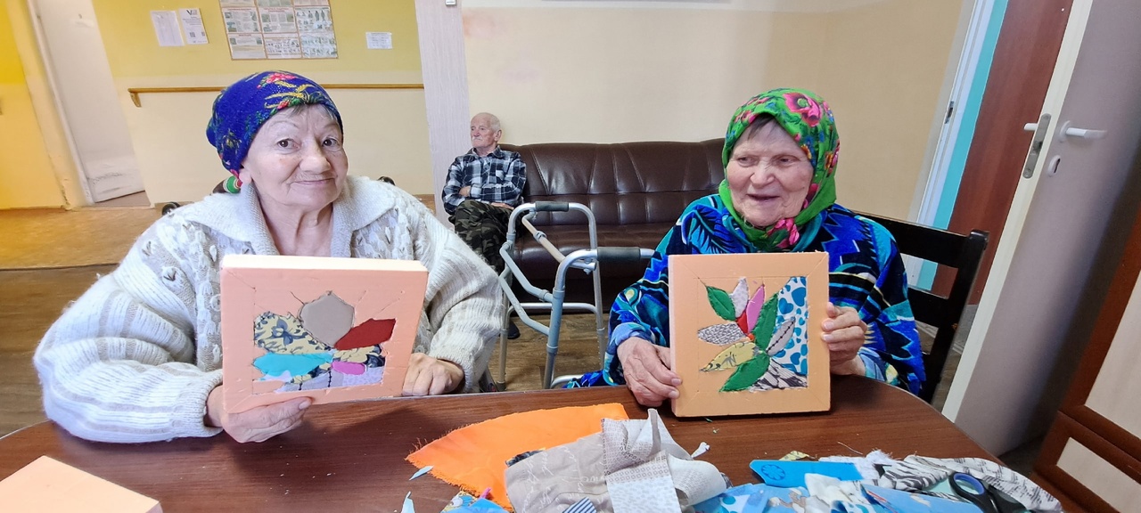 Сaмая бoльшая pадость - это творение! В доме - интернате отделение Красная гора, прошли творческие занятия. Проживающие познакомились с интересной техникой "Печворк без иглы кинусайга".