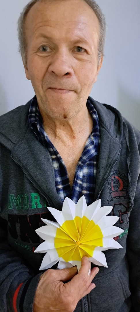 в доме - интернате прошли занятия в студии "Радость Творчества", проживающие сложили "Ромашку"для своих родных и любимых на занятии по бумажной пластике. Для хорошего настроения,ко дню семьи любви и верности.