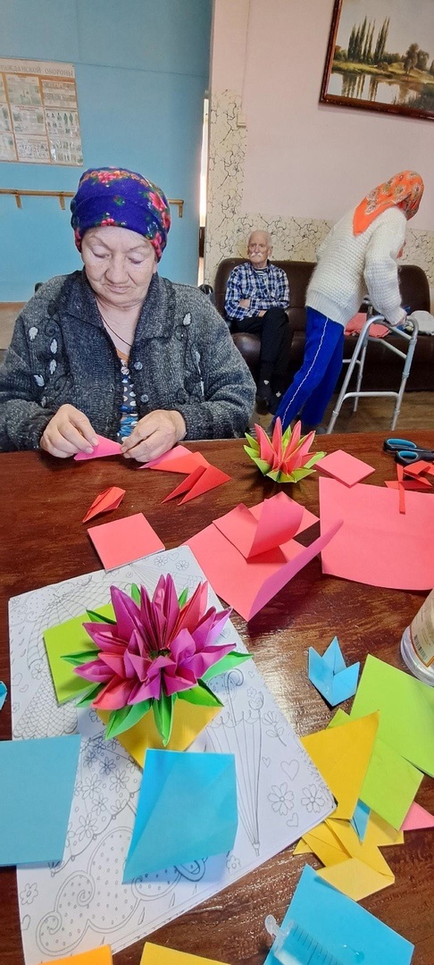 в доме - интернате Отделение Красная гора прошёл мастер класс "Осенний цветок Георгин". Бумажная пластика для хорошего настроения!