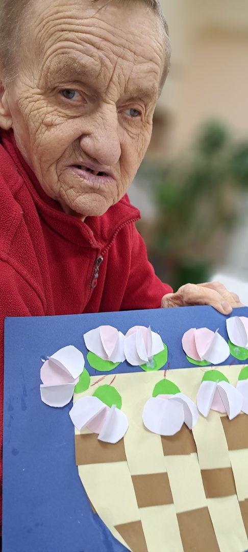 в доме - интернате прошли занятия в студии "Радость Творчества".Бумажная пластика ."Корзина Подснежников" Аппликация. Плетение.