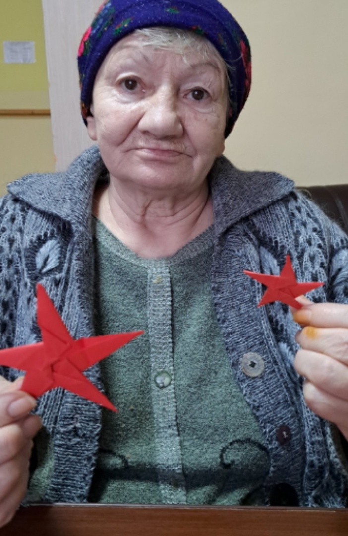 В доме - интернате (Отделение Красная гора) прошёл мастер класс "Пятиконечная звезда" Бумажная пластика. Поделка к празднику.